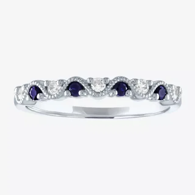 Modern Bride Gemstone Womens 1/10 CT. T.W. Lab Created Blue Sapphire 10K White Gold Wedding Band