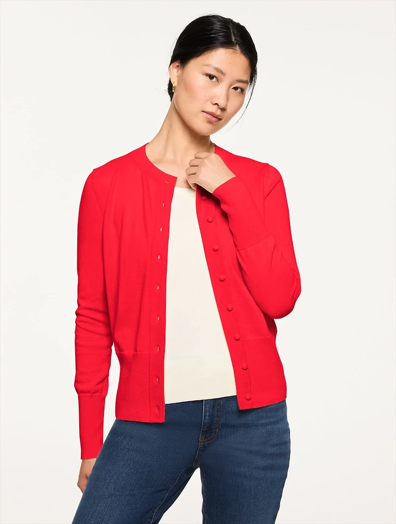 Take along an elegant finishing touch with our crewneck cardigan. Made from an exceptionally soft cotton blend with rib knit trim. In an easy relaxed fit. Perfect for any day-to-night occasions. It's oh-so effortless.