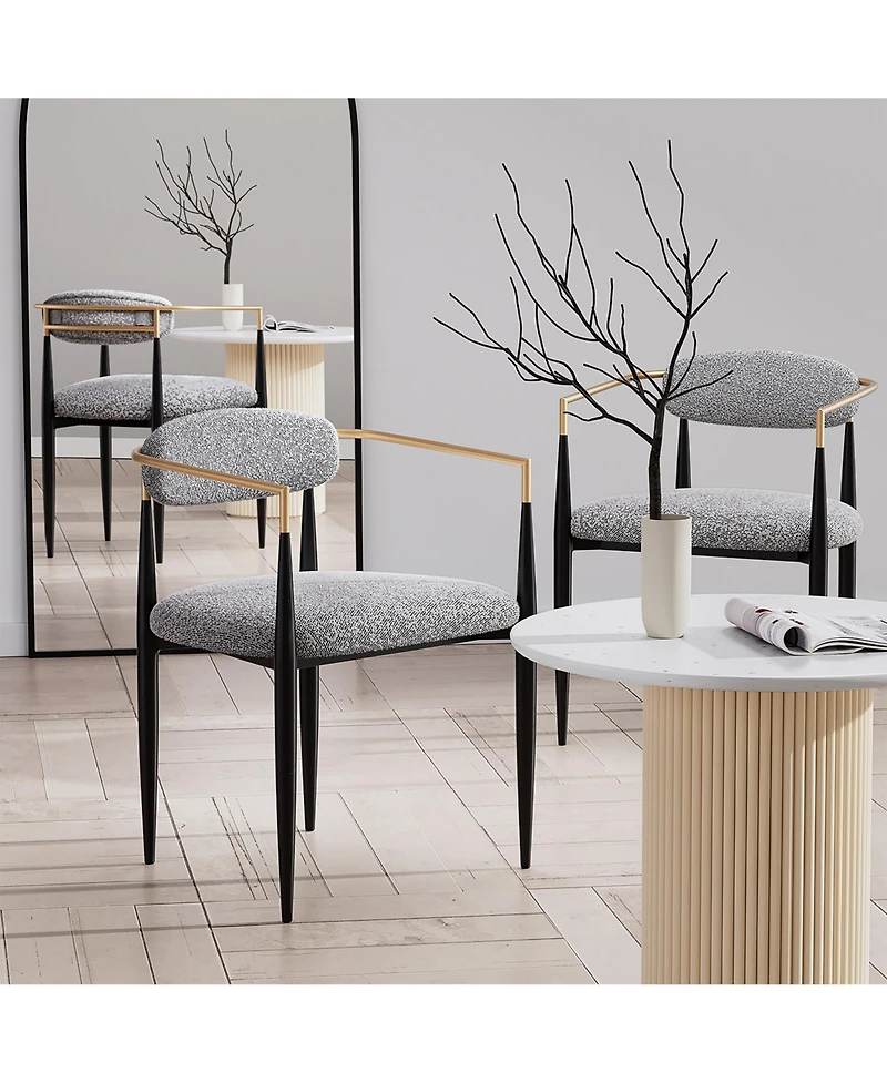 This dining set crafts an inviting haven for every gathering, be it a warm family dinner or a chic get together with friends. The table showcases a 47 inches Round Faux Marble Table Top, effortlessly infusing a dash of luxury into your dining zone. Paired with chairs that deliver boucle s timeless comfort, elevated by minimalist metal legs, it introduces a modern sophisticated, on trend flair. The Metal Pedestal with Fluted Design doesn t just guarantee stability-its intricate detailing becomes a visual focal point, enhancing the allure of your dining room or kitchen. With three elegant chair color options-white, black, and gray-this set adapts seamlessly to your personal style.
