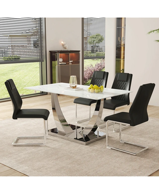 Streamdale Furniture Modern Marble Dining Set - 4 Chairs with Pu Upholstery