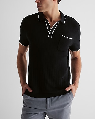 The everyday polo made new with a ribbed cotton sweater material and tipping at the collar, sleeve, and pocket for added flair. Pair with jeans, chinos, or dress pants for a polished style.