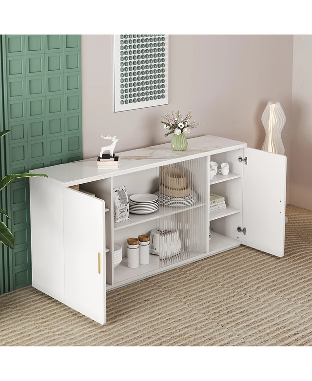 Sugift Modern Sideboard Cabinet with Four Doors and Storage Shelves