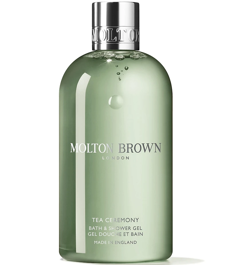 Molton Brown Tea Ceremony Bath & Shower Gel Find your calm in life’s everyday chaos with this unisex, woody-green body wash. Levelling up your daily cleanse to a ceremonial ritual, feel all-surround serenity with generously fragranced clouds of sweet nashi pear, fresh green tea and the rich, woody warmth of hinoki wood accord.