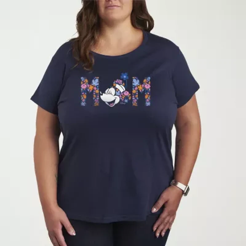 Mom Florals Womens Plus Crew Neck Short Sleeve Minnie Mouse T-ShirtMom Florals Womens Plus Crew Neck Short Sleeve Minnie Mouse T-Shirt