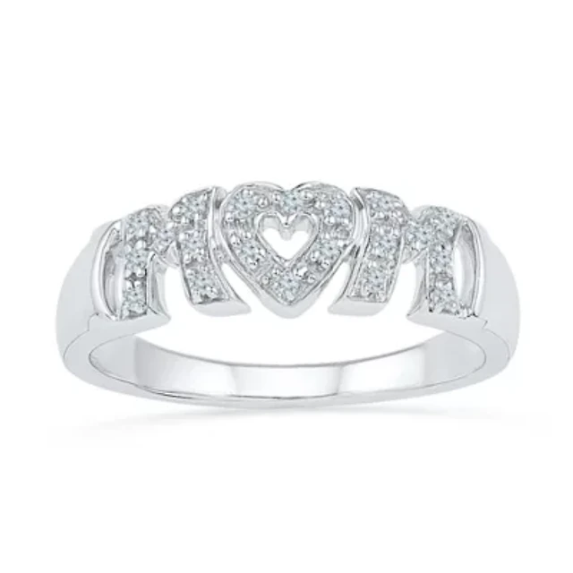 "Mom" Womens 2MM Diamond Accent Natural White 10K Gold Heart Band
