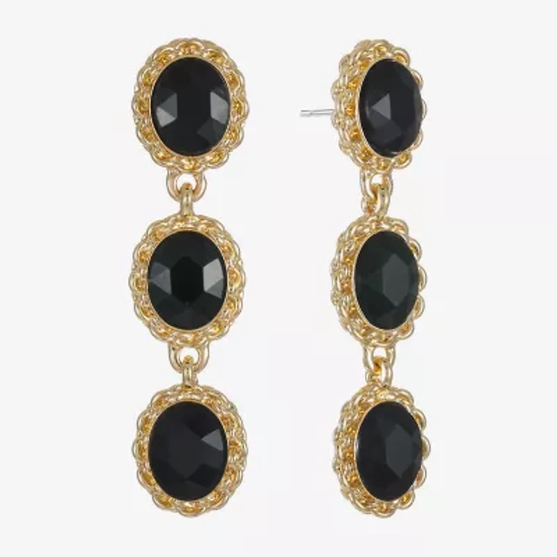 Monet Jewelry Gold Tone Womens Black Glass Oval Hypoallergenic Drop Earrings