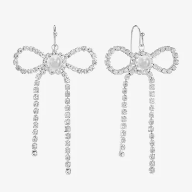 Monet Jewelry Timeless Womens Glass Simulated Pearl Bow Drop Earrings