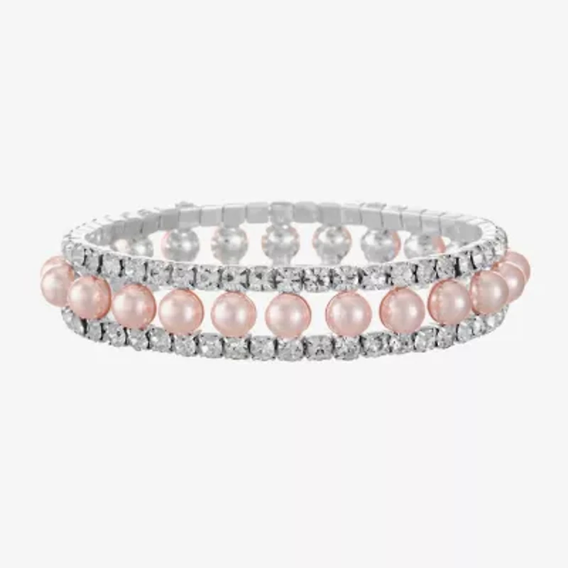 Monet Jewelry Timeless Womens Glass Simulated Pearl Round Stretch Bracelet