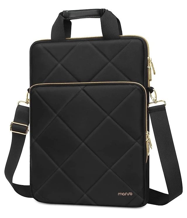 Mosiso 15.6 Inch Laptop Messenger Bag, Rhombus Quilted Shoulder Briefcase with Front Pocket & Handle - Fits MacBook Pro 16, Dell, Hp, Lenovo - Black