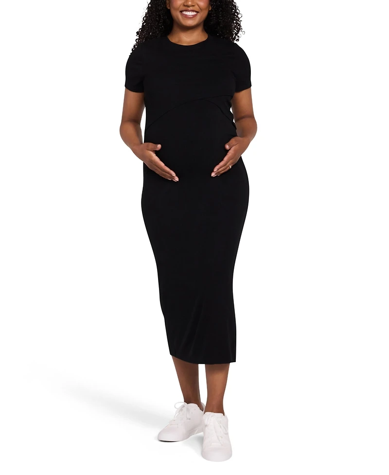 Motherhood Maternity Crew Neck Short Sleeve Nursing Midi Dress