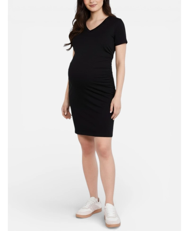 Motherhood Maternity Women's V-Neck Short Sleeve Side Ruched Bodycon Mini Dress in Franklin, TN