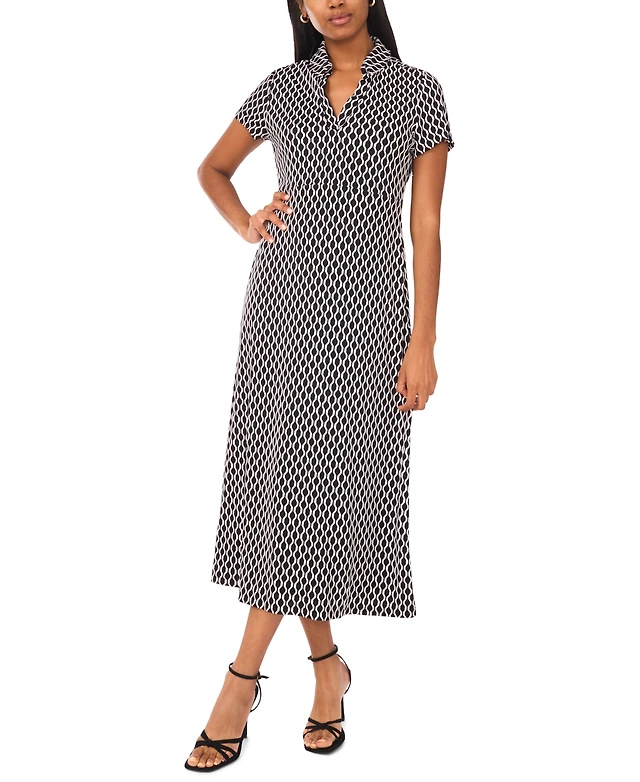Msk Petite Collared Short-Sleeve Midi Dress
