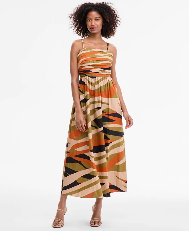 Msk Women's Cotton Pleated-Bodice Tie-Back Midi Dress