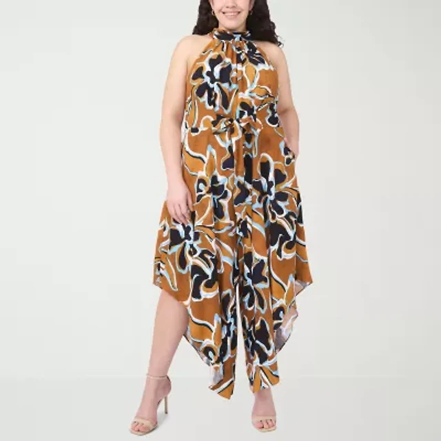 MSK Womens Halter Neck Sleeveless Plus Jumpsuit