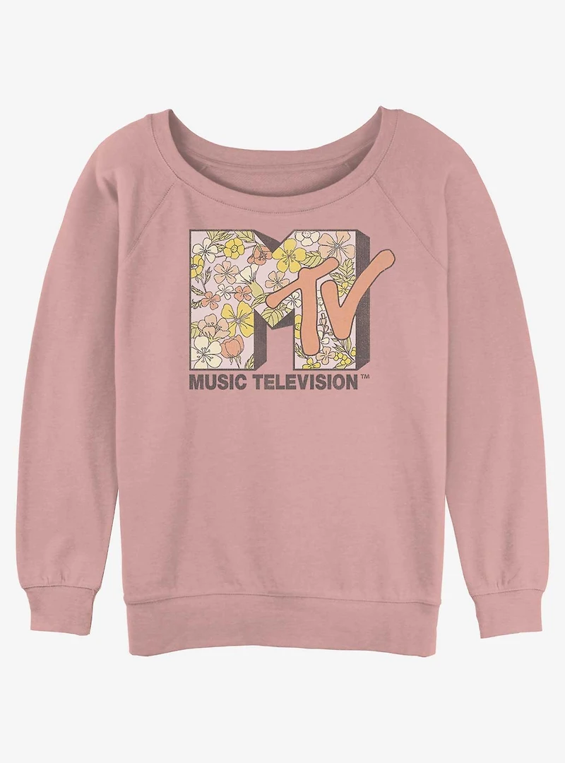 MTV Floral Logo Girls Slouchy Sweatshirt