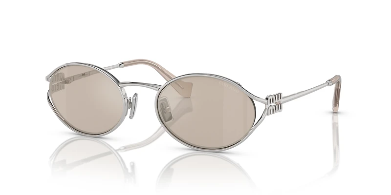 Elevate your look with the MU 52YS miu miu sunglasses. The oval frames, crafted with lightweight metal, exude timeless elegance and versatile appeal. Full-rim styling adds definition, while the silver sunglasses front pairs effortlessly with gold lenses for a sophisticated finish. Perfect for enhancing your everyday aesthetic, these sunglasses deliver advanced UVA/UVB protection with a classic touch.