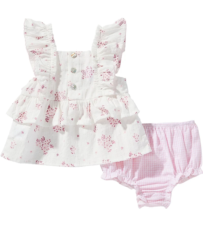 Mud Pie Baby Girls Flutter Sleeve Square Neck Blossom Pinafore Dress & Seersucker Diaper Cover Set
