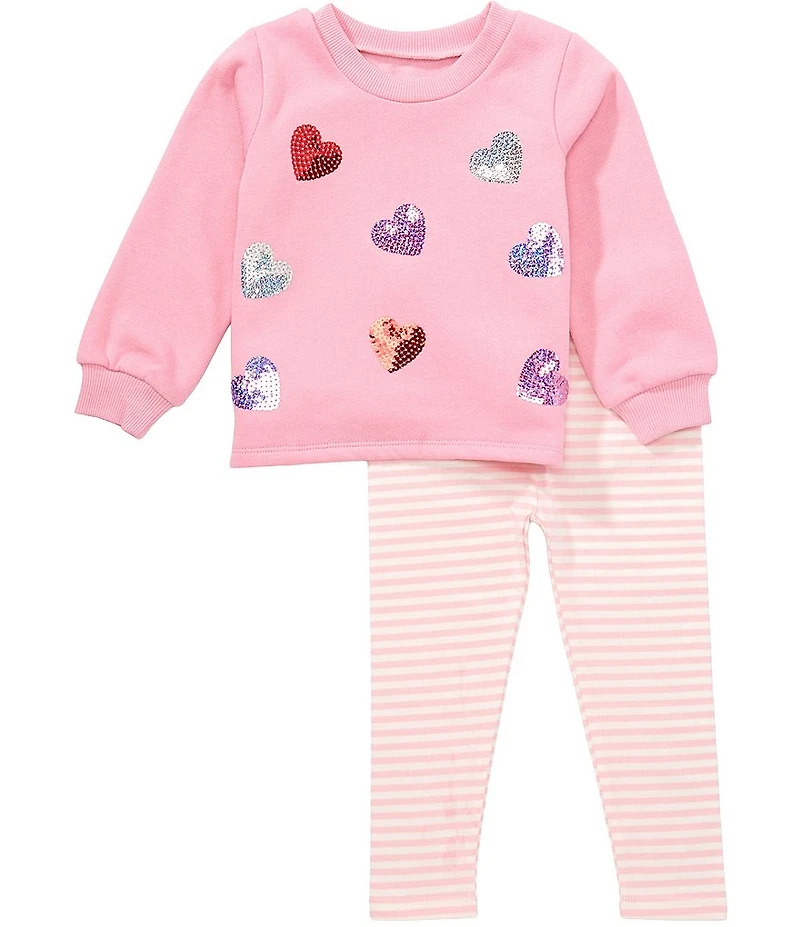 Mud Pie Baby Girls Long Sleeve Heart Sweatshirt & Stripe Jersey Leggings Set