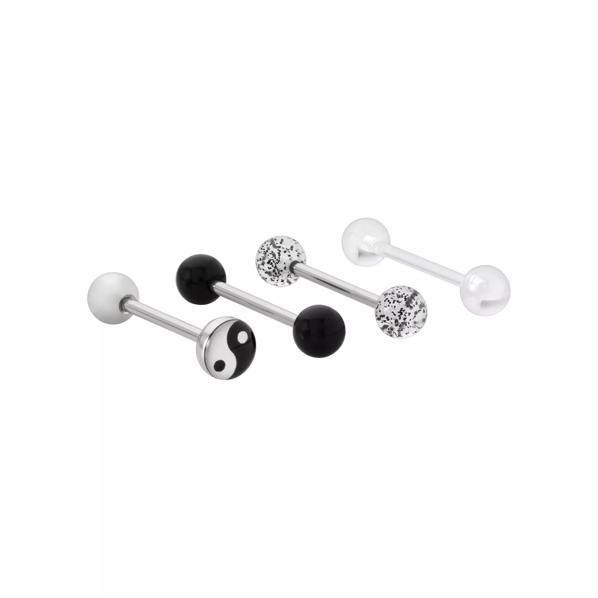 Multi-Pack Black and White Yin Yang Barbells 4 Pack - 14 Gauge