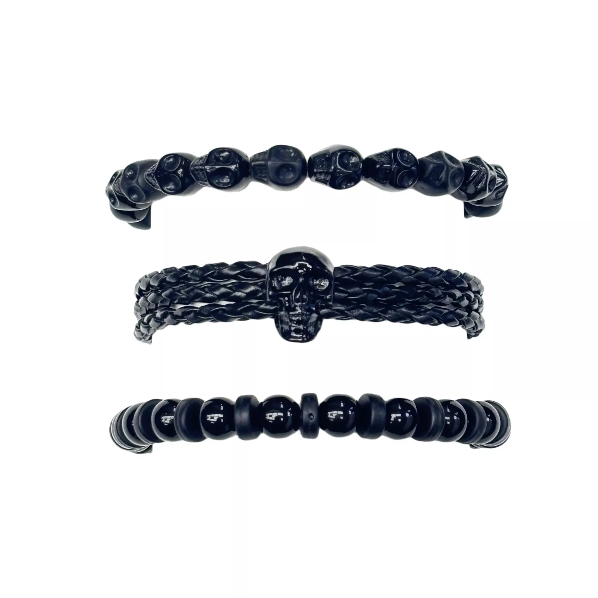 Multi-Pack Black Skull Beaded and Cord Bracelets - 3 PackMulti-Pack Black Skull Beaded and Cord Bracelets - 3 Pack
