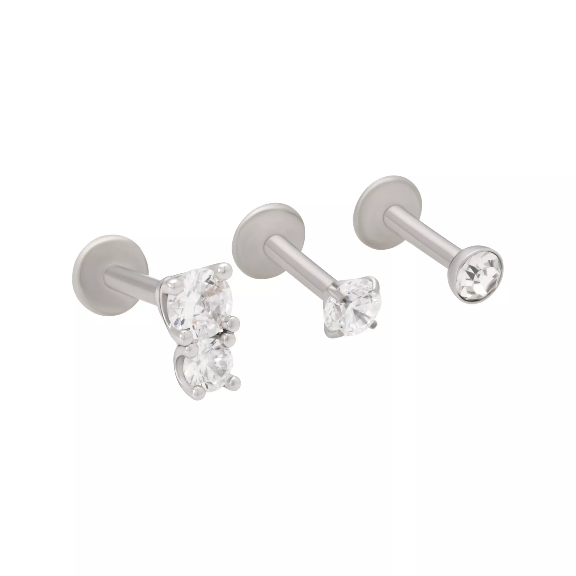Multi-Pack Clear CZ Round Stacked Silver-Tone Cartilage Rings 3 Pack - 16 Gauge in Franklin, TN