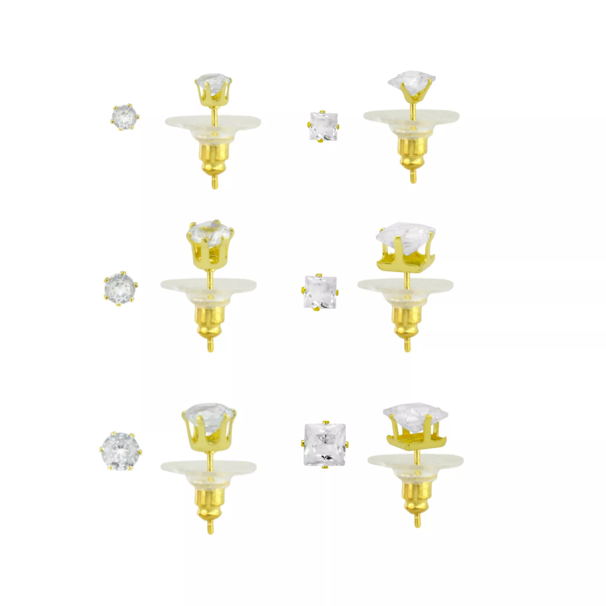 Multi-Pack CZ 14K Gold-Plated Stud Earrings 6 Pair - 20 Gauge