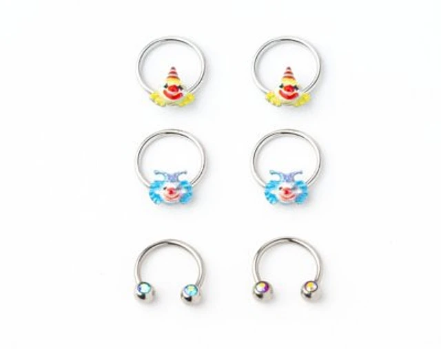Multi-Pack CZ Clown Septum Rings 6 Pack - 16 Gauge