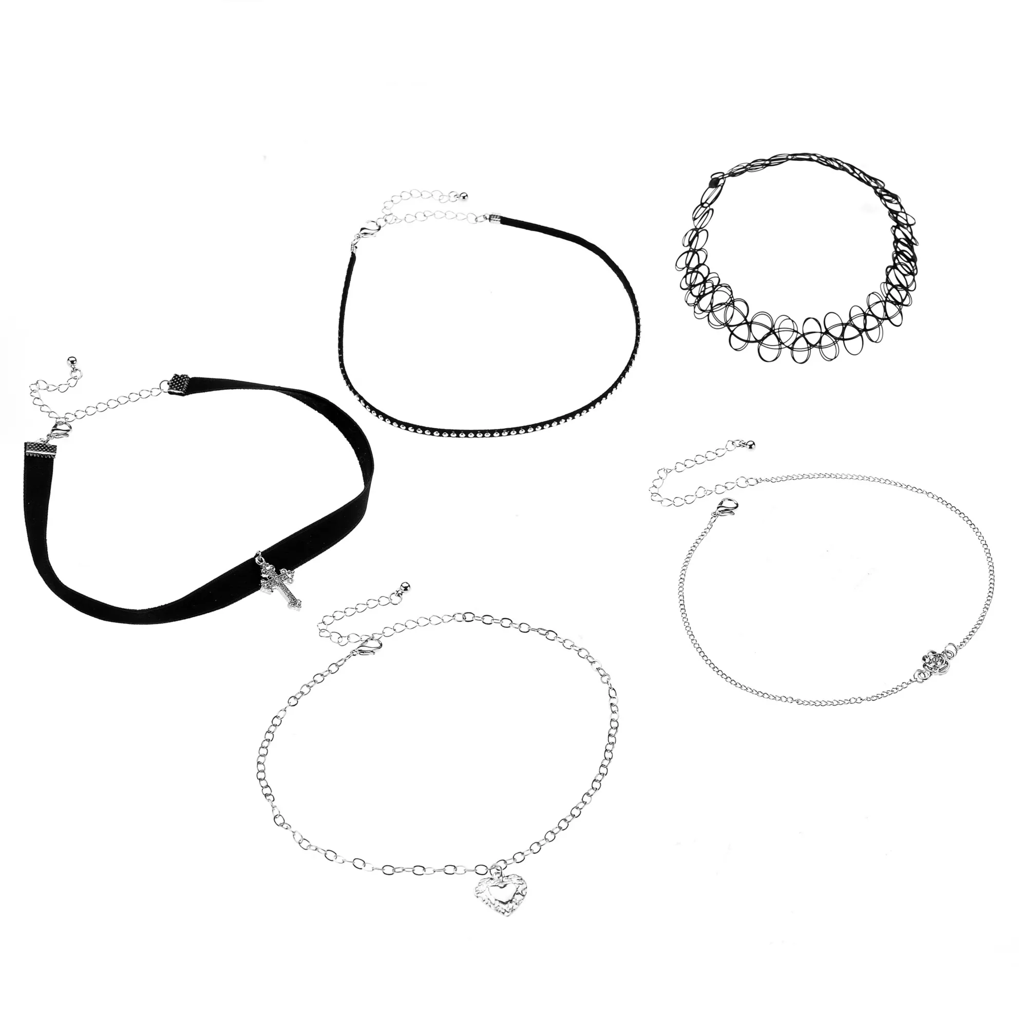 Multi-Pack Heart and Cross Choker Necklaces - 5 Pack