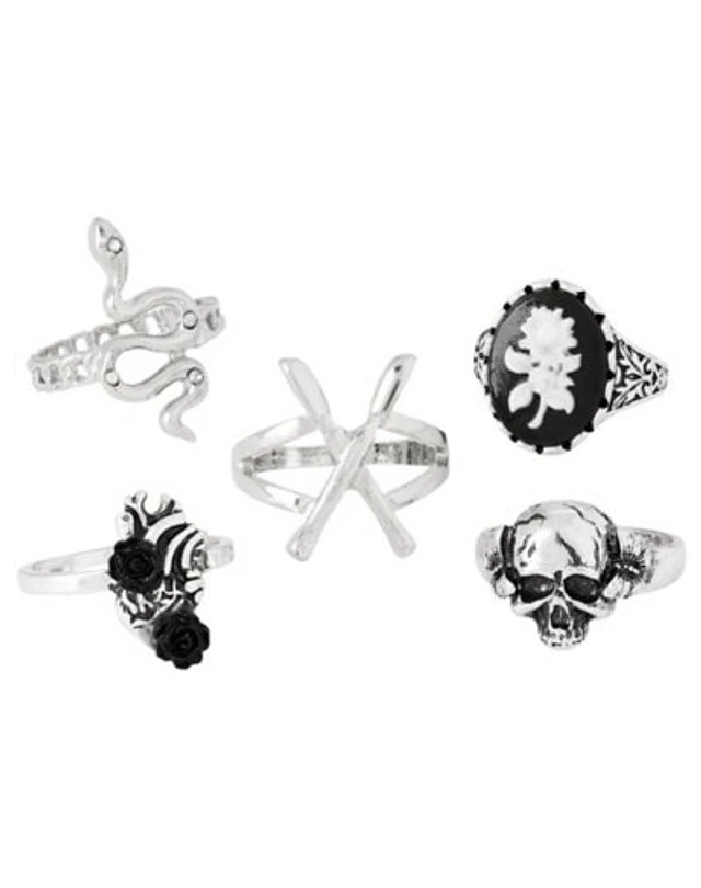 Multi-Pack Heart Rose Snake Rings Set 5 Pack - Morbid