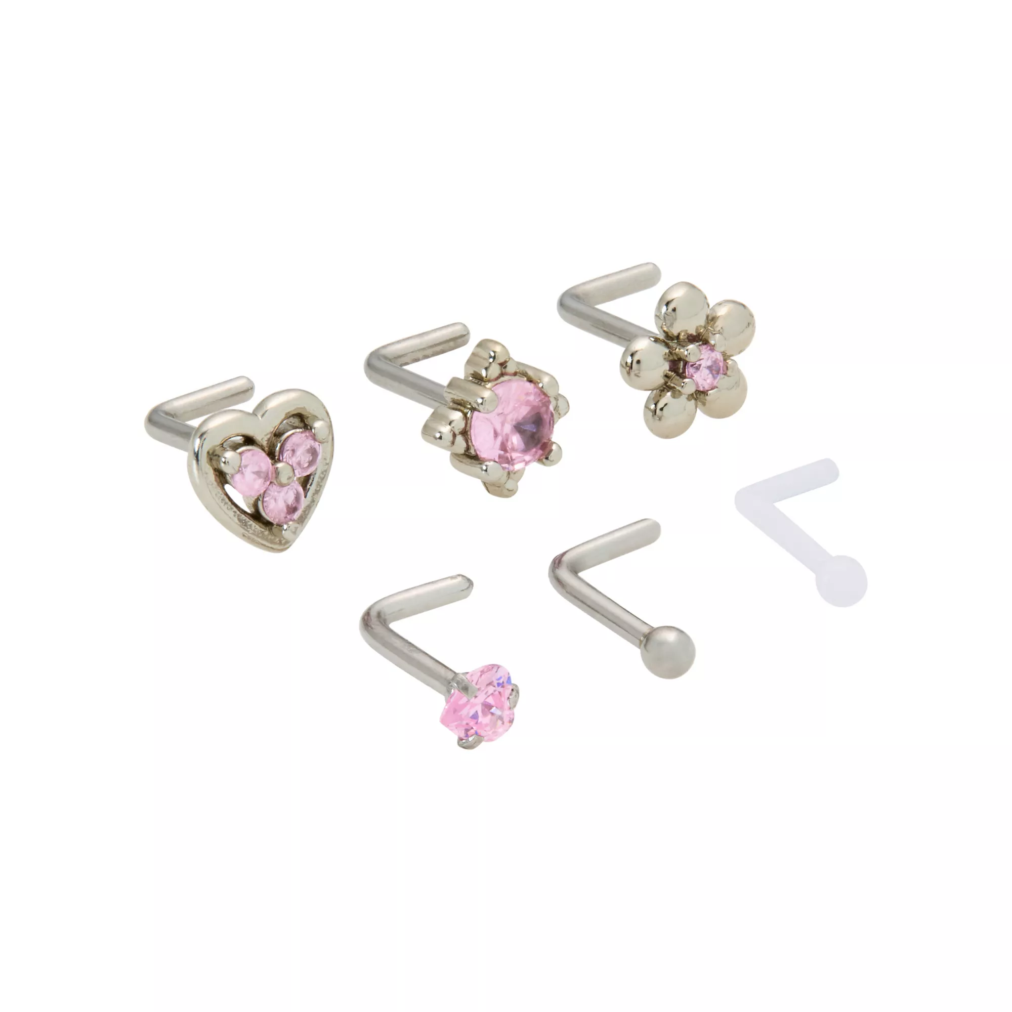 Shop Spencer’s for the perfect Multi-Pack Pink CZ Heart and Flower L-Bend Nose Pins 6 Pack - 18 Gauge. Make us your destination for all things Body Jewelry. **SHOP NOW & SAVE**