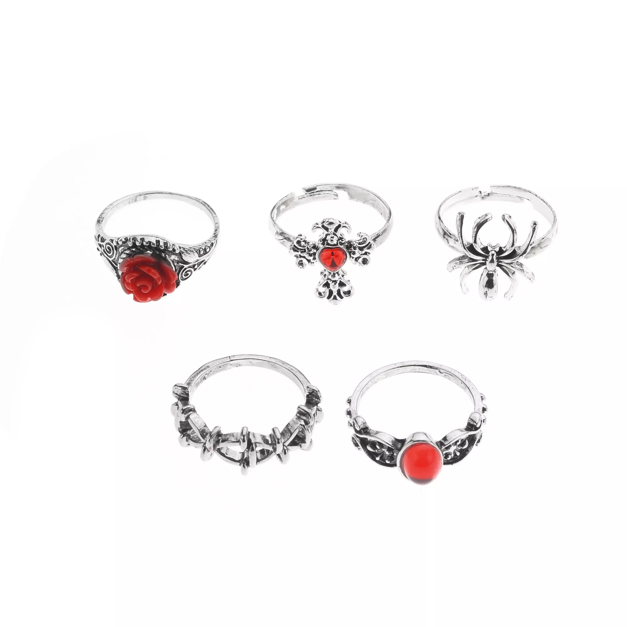 Multi-Pack Red Cross Spider Rose Rings - 5 Pack