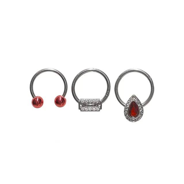 Multi-Pack Red Razor Septum Rings 3 Pack - 16 Gauge
