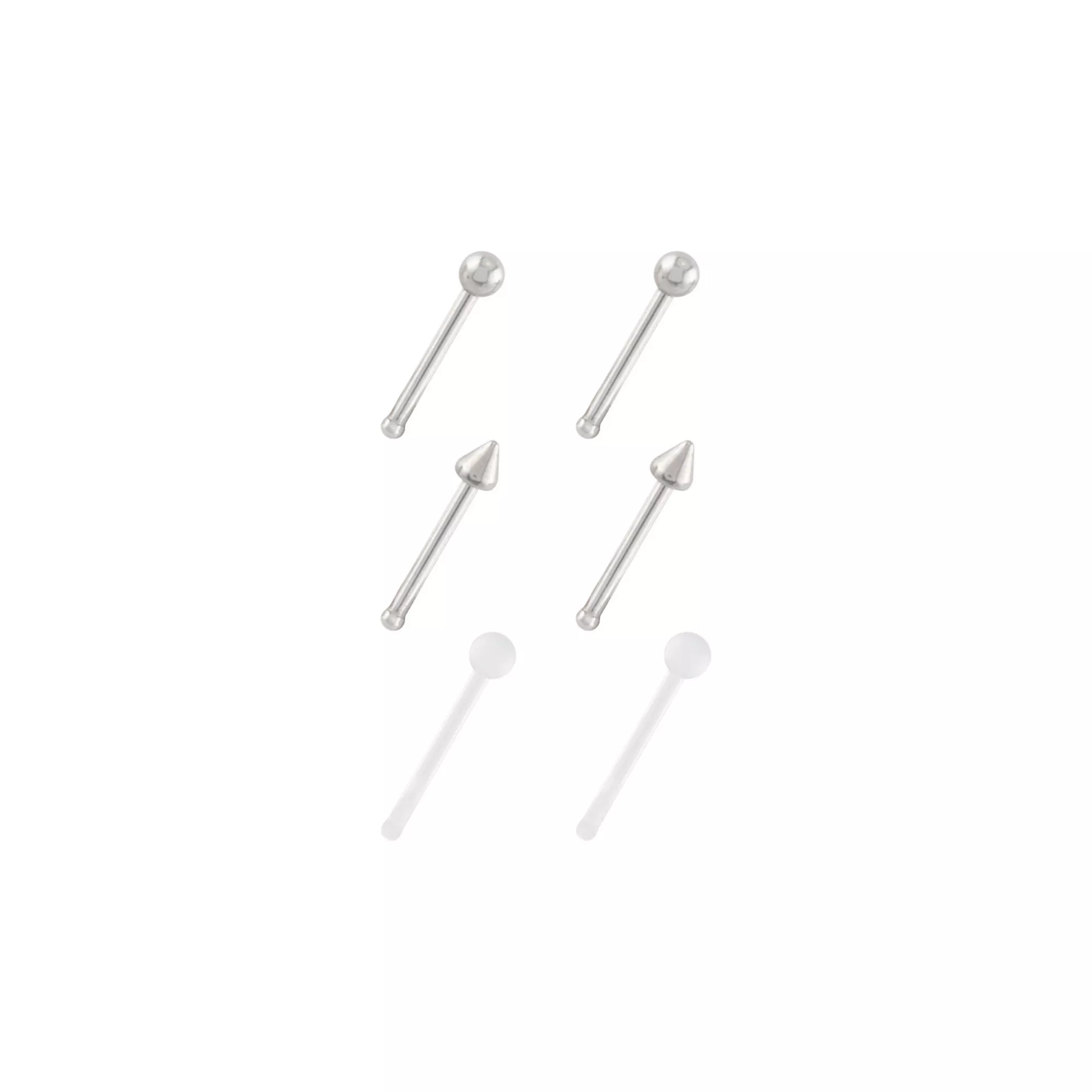 Shop Spencer’s for the perfect Multi-Pack Silvertone and Acrylic Retainer Nose Pins 6 Pack - 20 Gauge. Make us your destination for all things Body Jewelry. **SHOP NOW & SAVE**