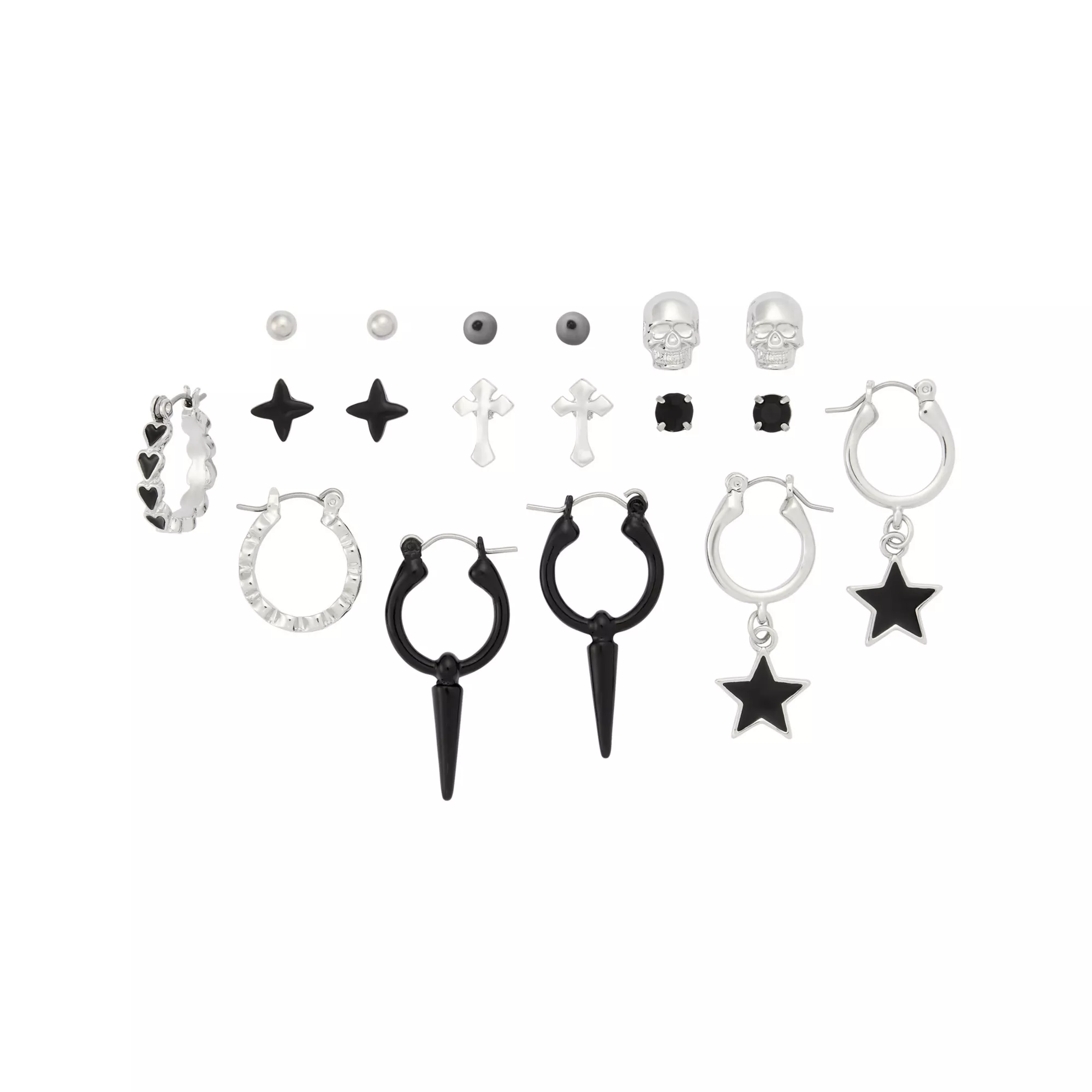 Multi-Pack Spike Cross Star Black and Silver-Tone Earrings - 9 PairMulti-Pack Spike Cross Star Black and Silver-Tone Earrings - 9 Pair
