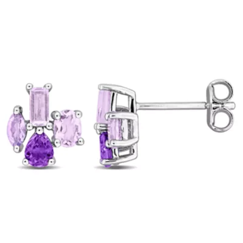 These post earrings are crafted in sterling silver and feature vibrant gemstones (Citrine, Rhodolite, Blue Topaz (Sky), Tsavorite, or Rose de France Amethyst (Africa)) that create an elegant and eye-catching look. Each stone brings its own unique character and refined beauty while the polished silver setting enhances the sparkle and provides a smooth, timeless finish. Available in classic silver or yellow plated finishes, the design balances color, sophistication, and versatility, making them a meaningful addition to any jewelry collection suitable for both everyday wear and special occasions. Post back, Butterfly clasp Polished finish Prong setting Warranty available, 60 days Thailand Imported Belk Exclusive Material & Care Sterling Silver Metal, Sterling silver Clean with a soft cloth.