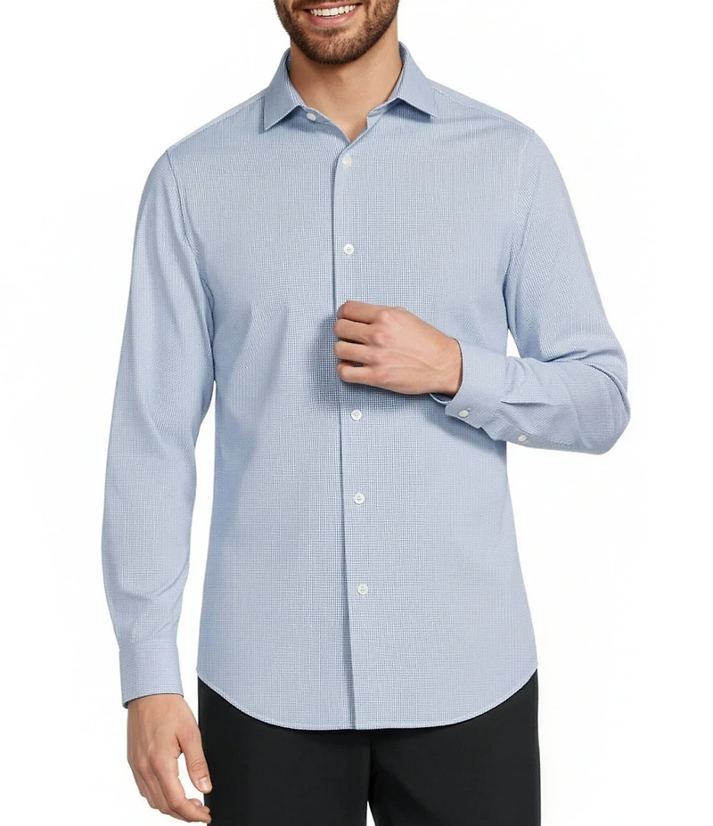 From Murano, this shirt features: Square pattern Spread collar Long sleeves Button-front closure Slim fit Polyamide/elastane fabric Machine wash/tumble dry Imported.