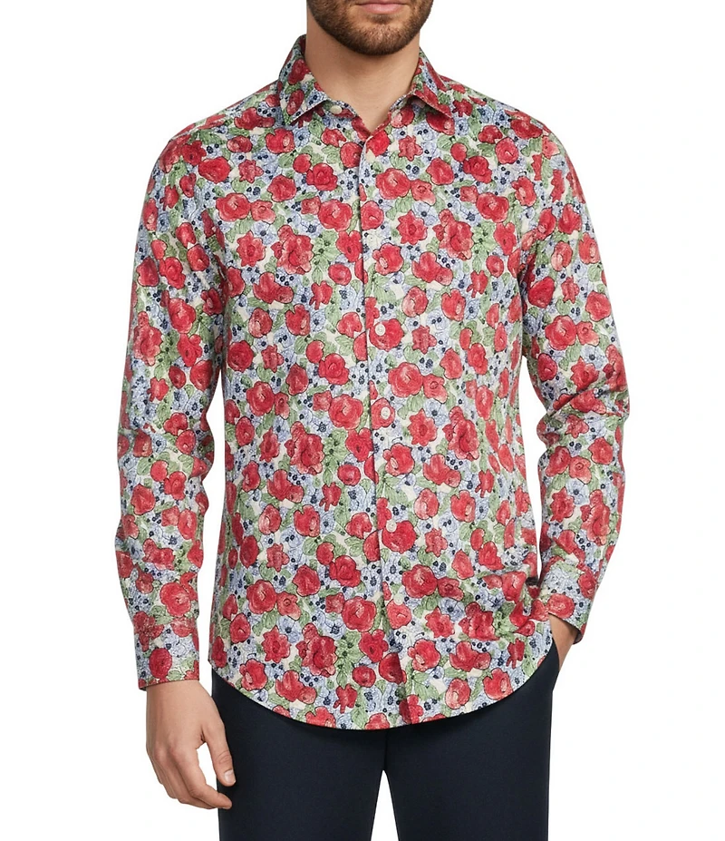 Murano Corsa Di Cavalli Derby Collection Slim Fit Rose Print Long Sleeve Woven Shirt in Franklin, TN