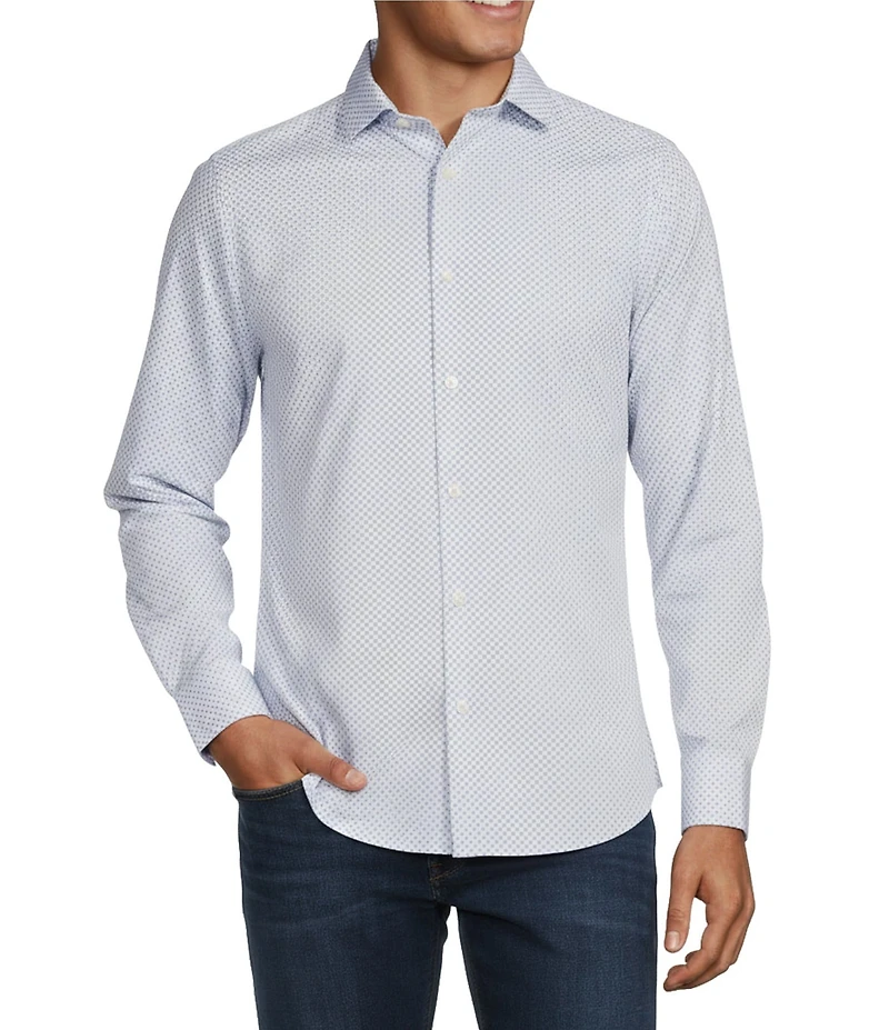 Murano Performance Stretch Slim Fit Medium Diamond Print Long Sleeve Woven Shirt