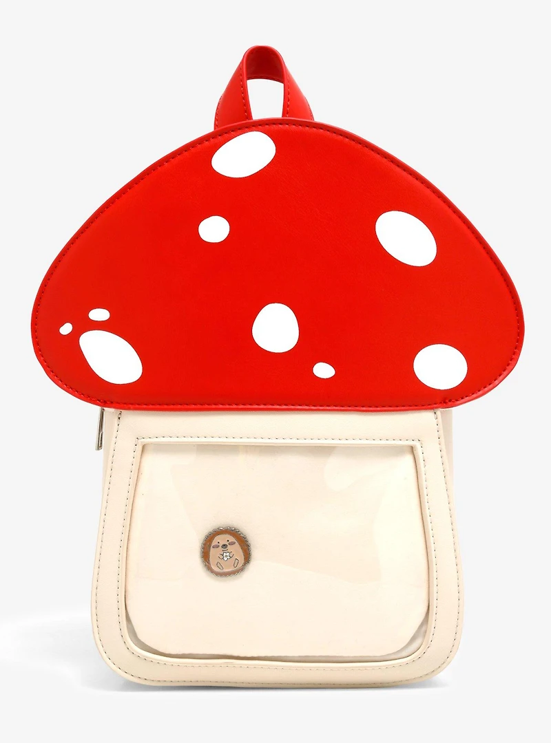 You'll have more than enough shroom for your pins and essentials with this mini backpack! It's shaped like a mushroom and comes with a clear pocket on the front to display your pins. Comes with a hedgehog pin to get you started! Complete with top zipper pocket and adjustable straps.