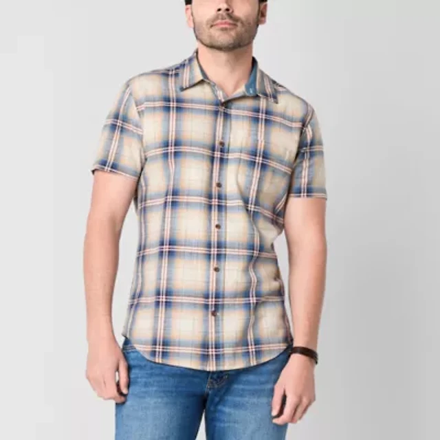 Arizona Mens Short Sleeve Regular Fit Button-Down Shirt