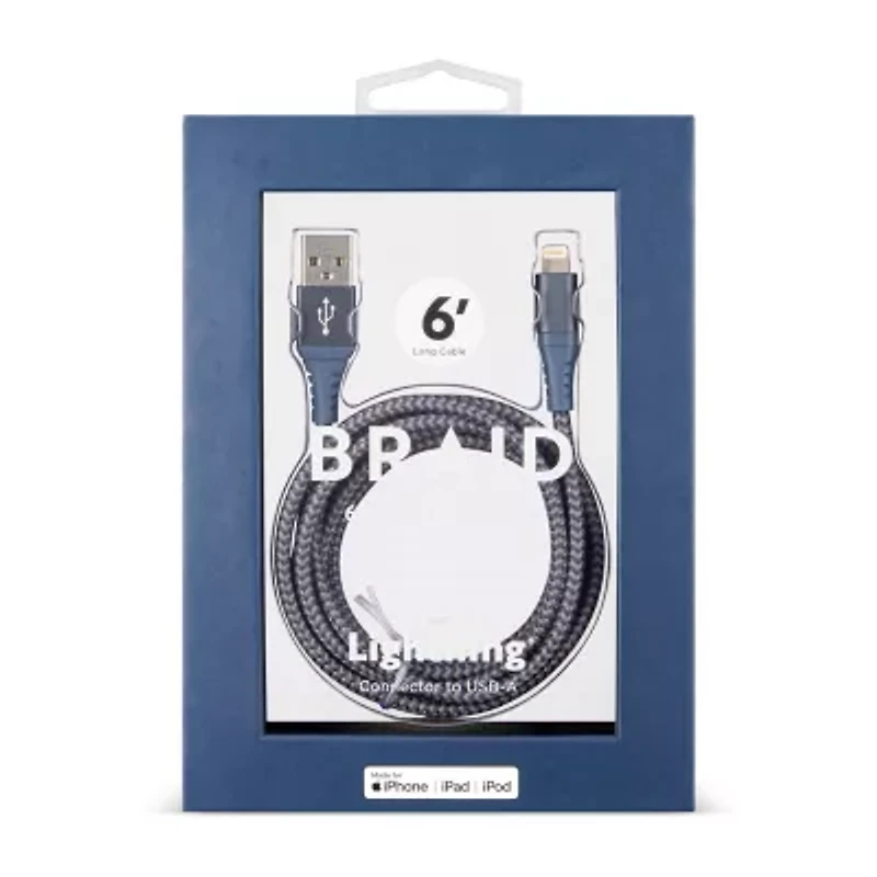 MVMT's 6' long braid lightning cable helps keep all your tech devices charged. Has a connector to USB-A