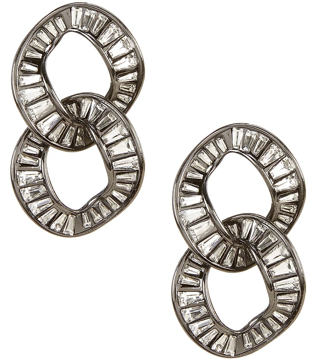 Natasha Accessories Baguette Interlock Link Orbital Earrings