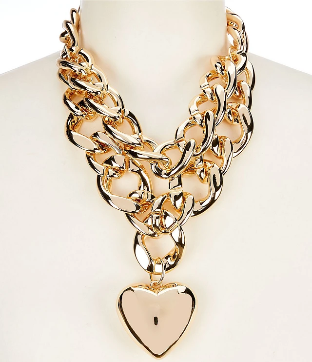 Natasha Accessories Double Row Link Puffy Short Pendant Statement Necklace