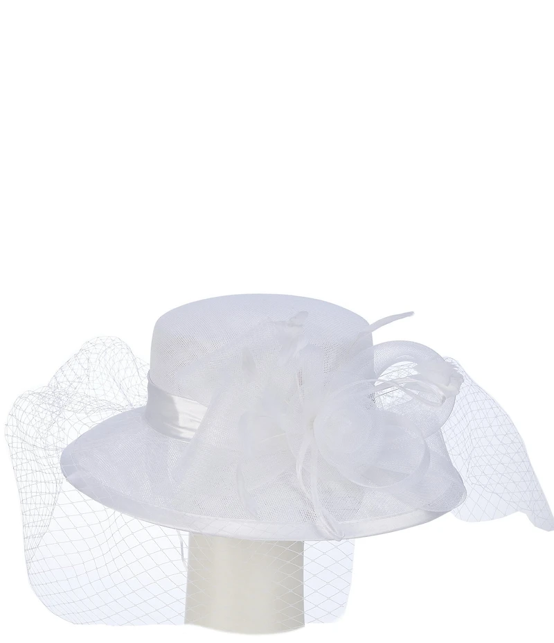From Natasha Accessories, this fascinator features: 60% sinamay / 5% feather / 20% plastic / 15% polyester Pull string closure Brim approx. 3.5" Approx. 23" circumference Imported.