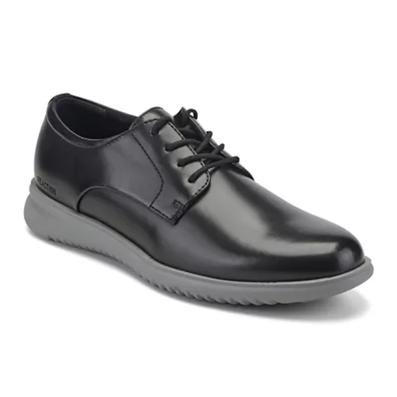 The Kenneth Cole Reaction Nathan polished derby meets the grippy rubber sole of a sneaker and a cushioned removable insole in this season spanning hybrid. Founded in 1982 Kenneth Cole has created modern, versatile, and fashion-forward essentials that provide the perfect balance of style and comfort. -Synthetic upper -lining and outsole. Flexible outsole. Cushioned removable insole. -Material: Faux Leather Lace-up closure Padded insole Imported Product Specifications 0 in. M Material Faux Leather