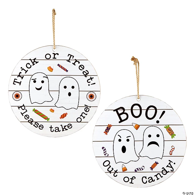 National Tree Company 11" Halloween Hanging Sign, Double Sided "Trick or Treat" and "Out of Candy"
