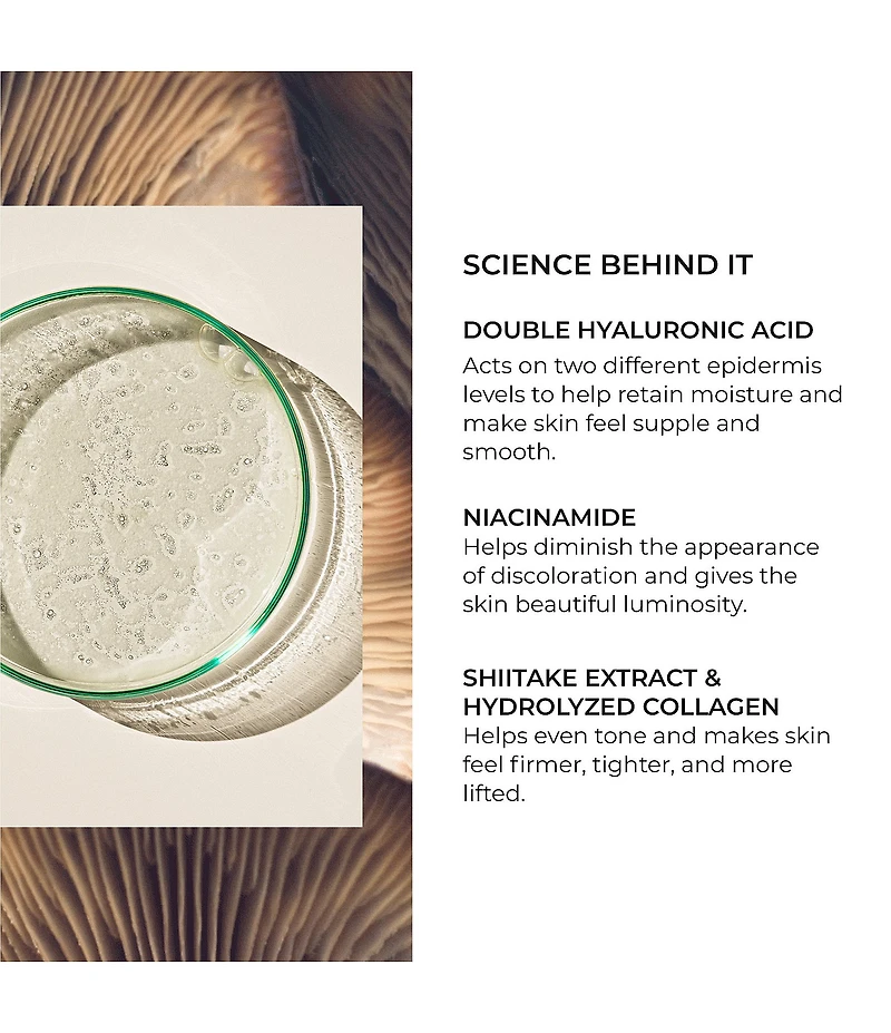 What It Is: A micro-lifting cream for neck and décolleté that hydrates the skin for a tighter, firmer, plumper, and more even-toned appearance. What It Does: This anti-wrinkle, firming cream is explicitly created for the neck and décolleté. Packed with cutting-edge ingredients, this wondrous formula reduces the appearance of visible signs of aging, such as rings of Venus, vertical lines, and sagginess. This powerhouse formula features potent ingredients like double hyaluronic acid, Aquaxyl, niacinamide, and BioMimetic Complex to make these two areas appear tighter, firmer, plumper, and more even in tone. Benefits: Firms: Helps skin look more supple, flexible, and toned. Tightens: Smooths the appearance of fine lines and wrinkles on the neck and décolleté. Brightens: Minimizes the appearance of dark spots and adds luminosity. Hydrates: Helps retain moisture, revealing plumper skin and a softer texture. Key Ingredients: BioMimetic Complex: This ground-breaking ingredient contains five epidermal anti-aging ingredients, in addition to several micro peptides and amino acids, which contribute to a younger-looking neck and décolleté. Shiitake Extract and Hydrolyzed Collagen: These firming ingredients help improve skin tone and make skin feel tighter and more lifted. Double Hyaluronic Acid: With high and low molecular weight, hyaluronic acid acts on two different epidermis levels to help retain moisture and make skin feel supple and smooth. Aquaxyl: This ingredient along with a powerful lipid cocktail make skin appear plumper. Niacinamide: Helps diminish the appearance of discolorations and gives your décolleté a beautiful luminosity. How to Use: Apply this cream using gentle, upward motions. Start the massage at the bottom of the bust, moving upwards towards the neck and the top of the shoulders.