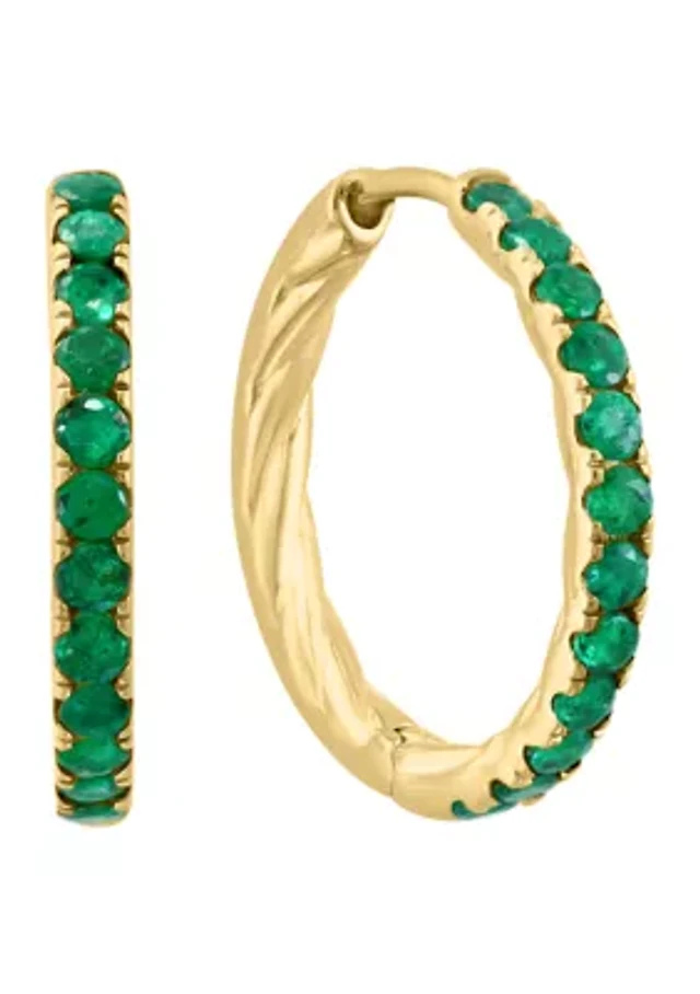 Natural Emerald Hoop Earrings in Gold Plated Sterling Silver
