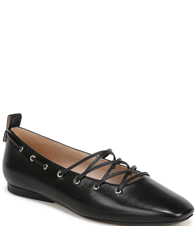 Naturalizer 27 EDIT Carla Ghillie Leather Lace Up Square Toe Casual Ballet Flats