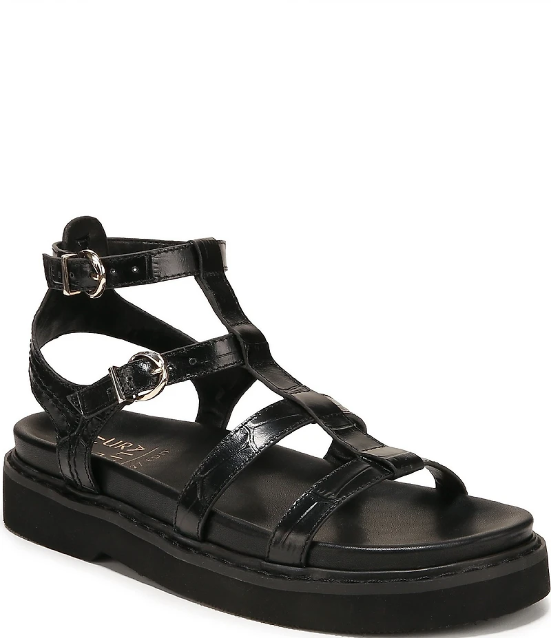 Naturalizer Lexie Croco Embossed Leather Platform Gladiator Sandals